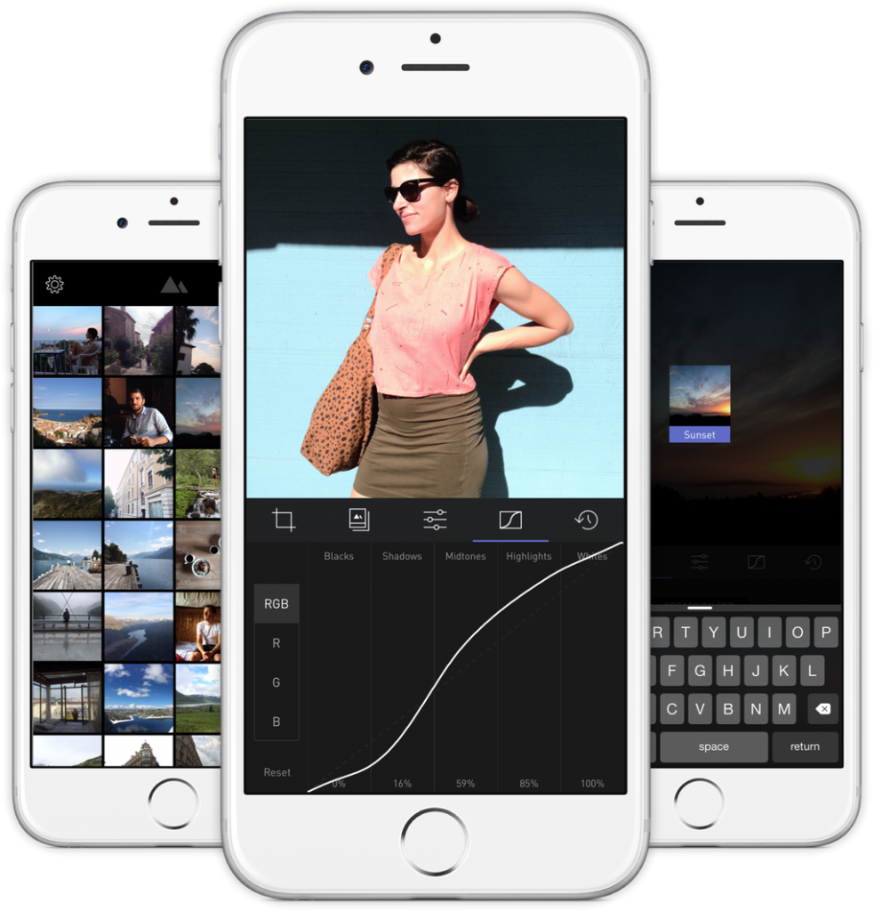 Описание новинки не обойдётся без сравнения с любимым многими VSCO Cam. Приложения похожи дизайном, однако это два фоторедактора с совершенно разной концепцией. VSCO — упрощённый инструмент с красивыми фильтрами для быстрого превращения посредственного снимка в заслуживающее внимания фото для Instagram. Darkroom же позволяет вам как самостоятельно создавать свои фильтры, так и работать при этом с кривыми и достаточно профессиональными настройками изображения.
