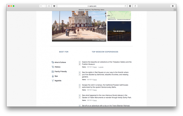 Vamo понравился тем, что он действительно полезен. Это сервис, который аккумулирует всю нужную и интересную информацию о месте, в которое вы хотите отправиться. И он абсолютно бесплатен.