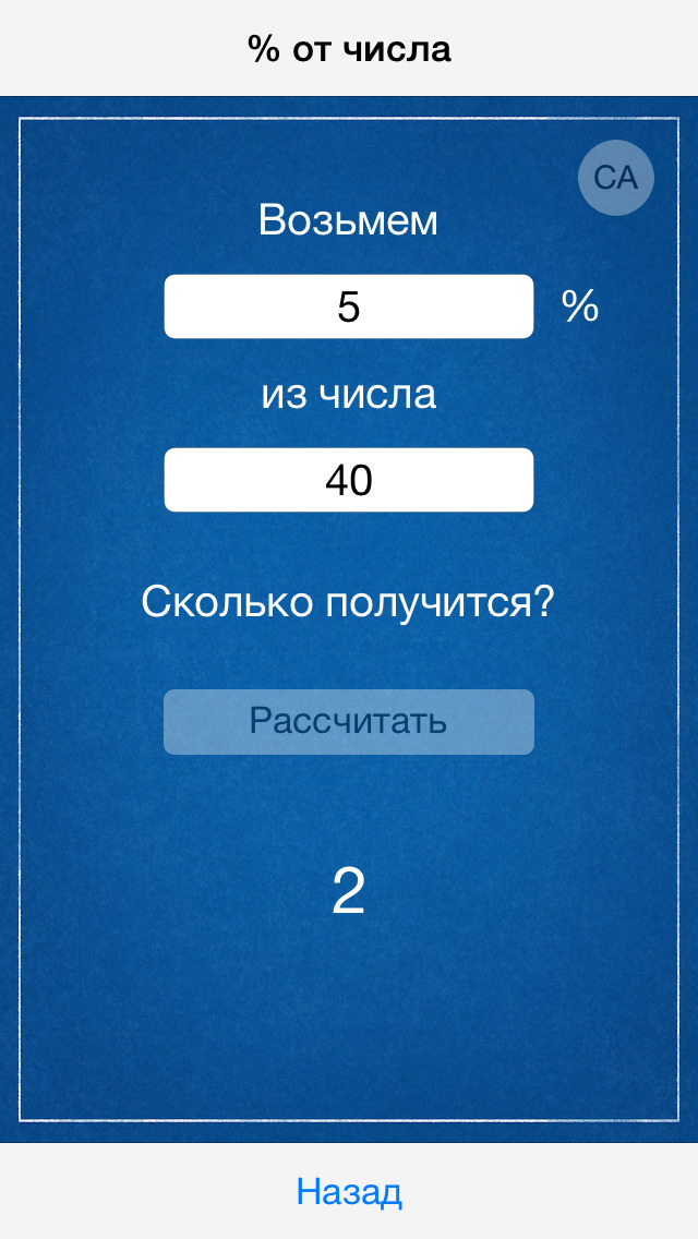 В век компьютерных технологий люди совершенно разучились считать в уме. Иногда несложное, казалось бы, вычисление процентов вгоняет нас в ступор. Чтобы избежать этого, воспользуйтесь очень простым, но удобным приложением Calculate Percent, которое содержит шаблоны различных вычислений, связанных с процентами, и получите мгновенный результат.