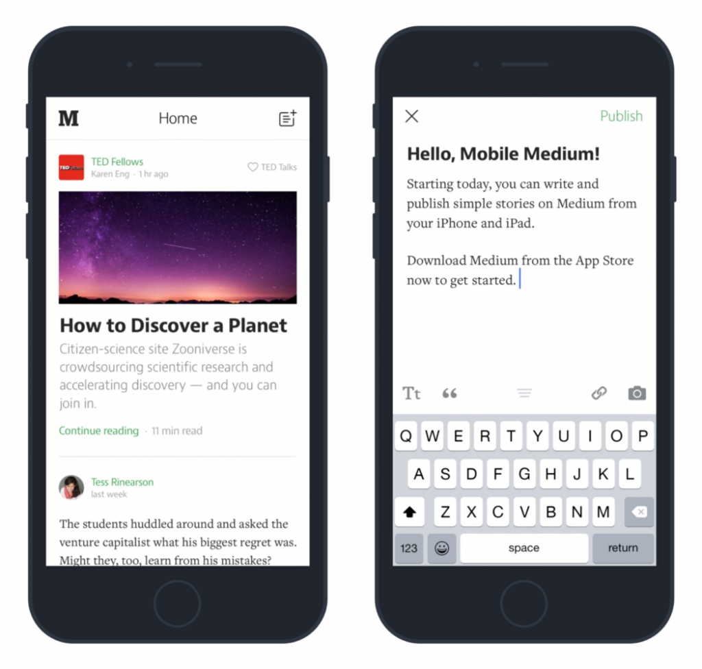 Основная функциональность обновлённого приложения Medium включает в себя редактирование всех атрибутов привычного поста: заголовка, подзаголовков, форматирование цитат и загрузку изображений. Создавать заметки на iPhone и iPad можно будет даже при помощи стандартной для iOS «Диктовки».