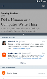 Про сервис Nuzzel мы писали совсем недавно, а это свежее приложение для мобильных устройств под управлением Android. Оно позволяет вычленить из вашей ленты Facebook и Twitter ссылки на самые интересные и популярные среди ваших друзей статьи. Таким образом, вы будете иметь возможность читать только то, что популярно среди вашего круга общения в социальных сетях.