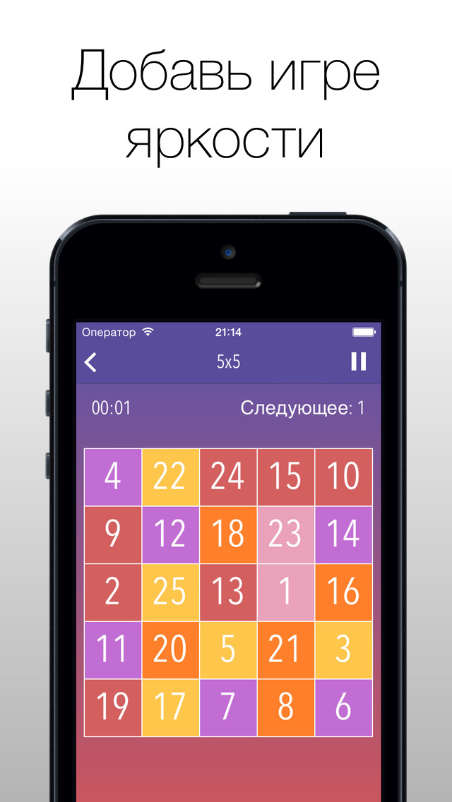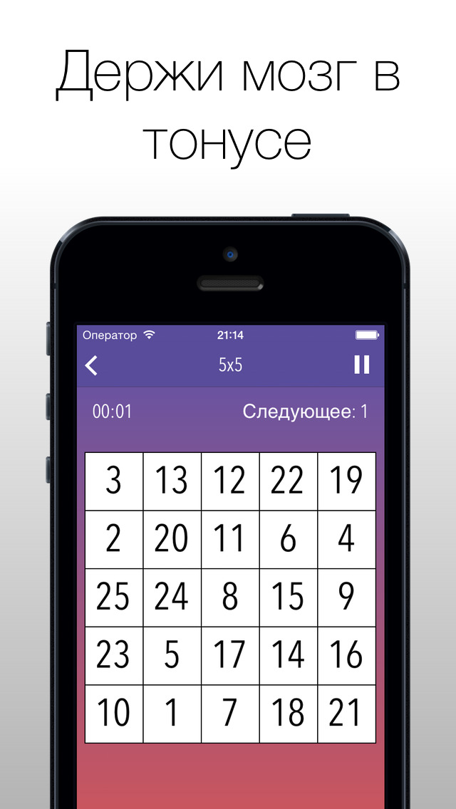 Есть такой тест — таблица Шу́льте, который используют для проверки скорости нахождения объектов в случайном порядке. Его можно применять не только для тестирования, но и для развития этого навыка, что, собственно, и делает приложение «Таблица Шульте». Вам нужно просто находить числа от 1 до 25 в случайно генерируемой таблице и воспроизводить их. Этот навык пригодится для прокачки скорочтения и повысит общий уровень внимательности и концентрации.