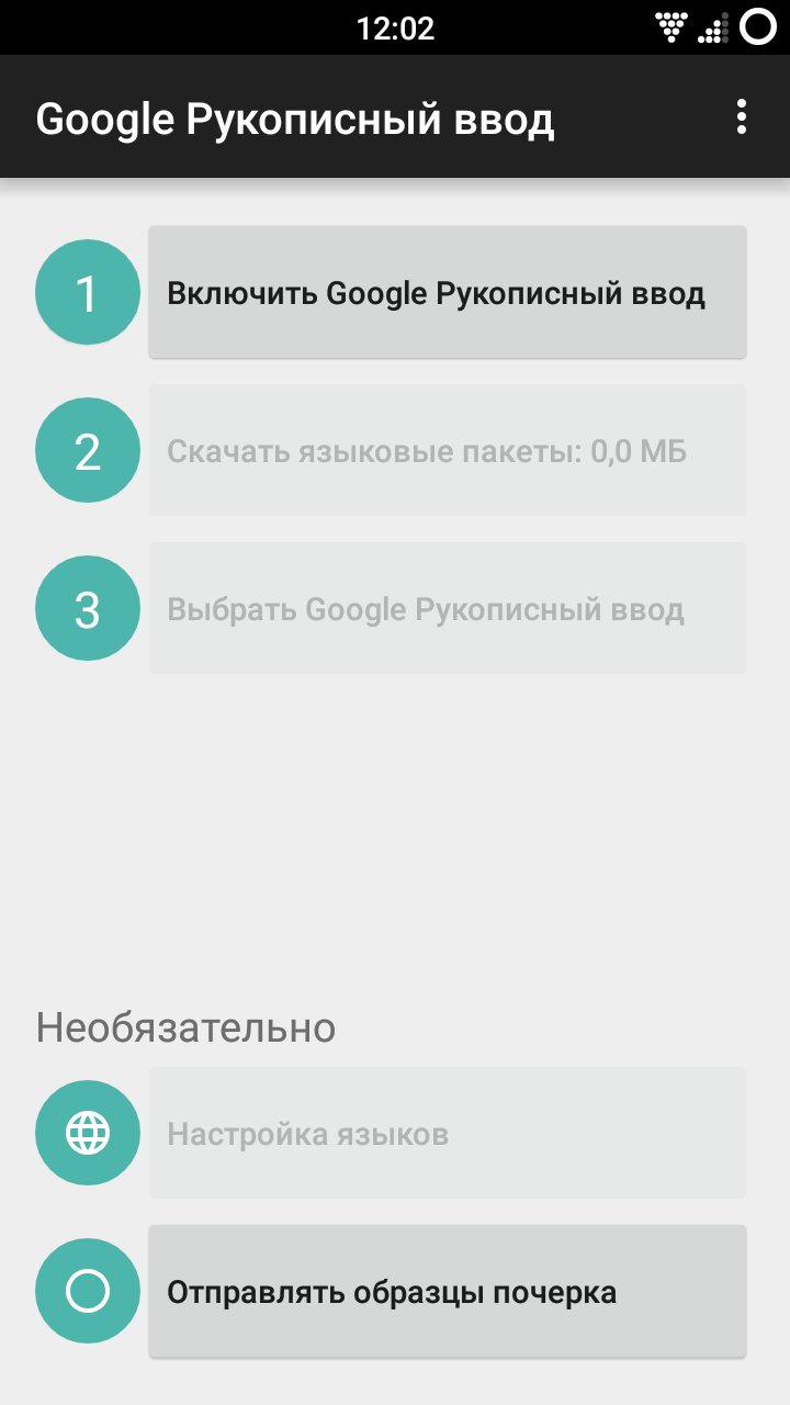 Нажимая последовательно расположенные на экране кнопки, вы активируете Google Handwriting, затем скачаете необходимый языковой пакет и, наконец, выберете эту клавиатуру в качестве средства ввода. После этого можно приступать к испытаниям.