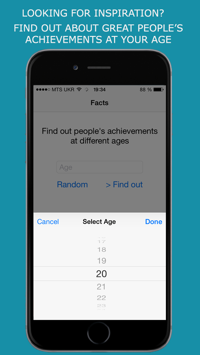 В первой из них вас попросят указать возраст, на основании которого приложение предоставит список достижений известных людей. Пока что в новинке их не так много, и при желании всего за несколько минут можно ознакомиться, например, со всеми достижениями 20-летних учёных, музыкантов, знаменитостей и культурных деятелей. Также можно прочитать и более детальную биографию каждого из них: под каждой выжимкой есть кнопка, которая перенаправляет на соответствующую статью «Википедии».